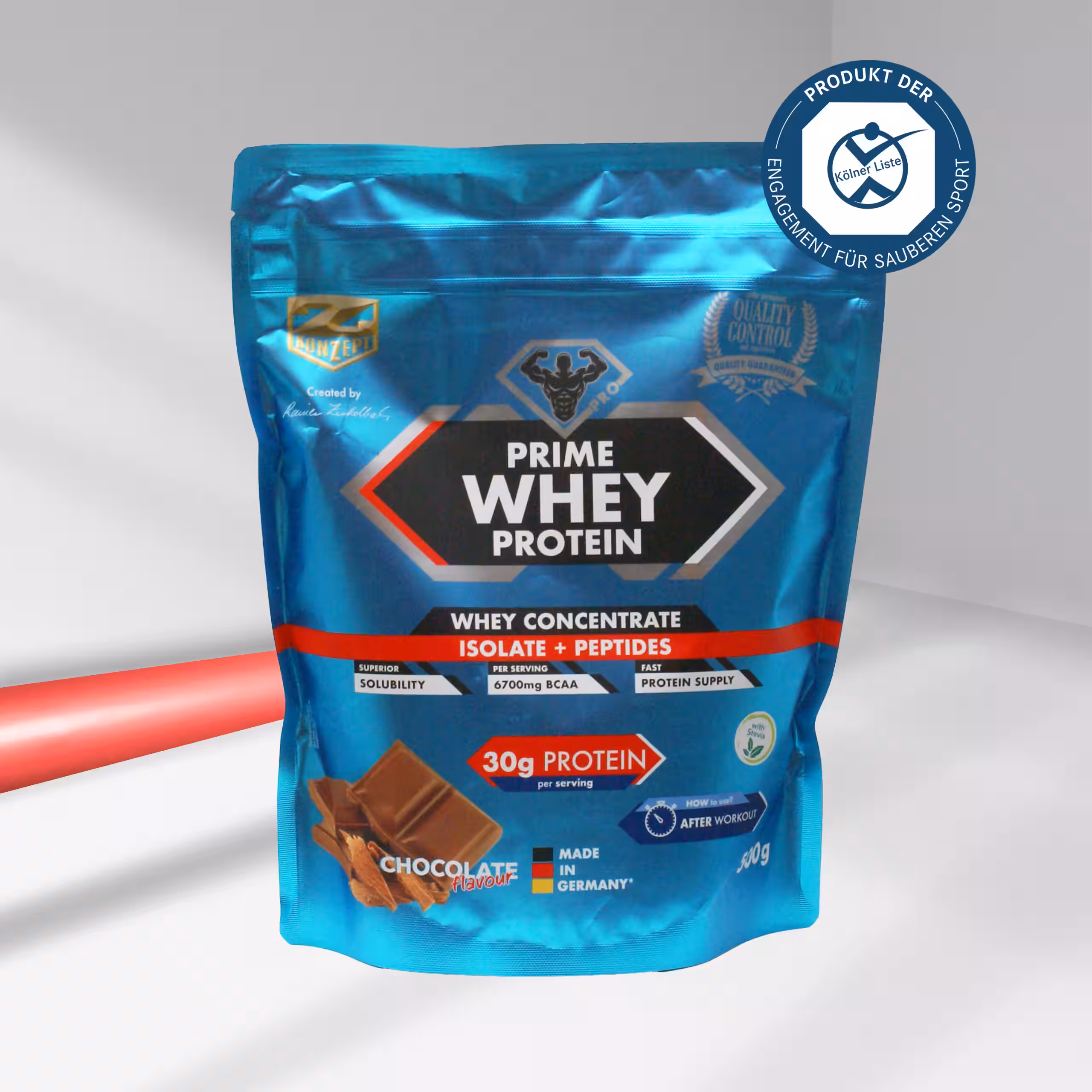 Prime Whey Protein: Hochwertige Mischung aus Whey Protein Isolat, Konzentrat und Peptiden. Pro Portion erhalten Sie 30g Protein und 6.700mg BCAA für optimale Muskelunterstützung. Dank der extrem schnellen Aufnahme und besten Löslichkeit ideal für Sportler und Fitnessbegeisterte.