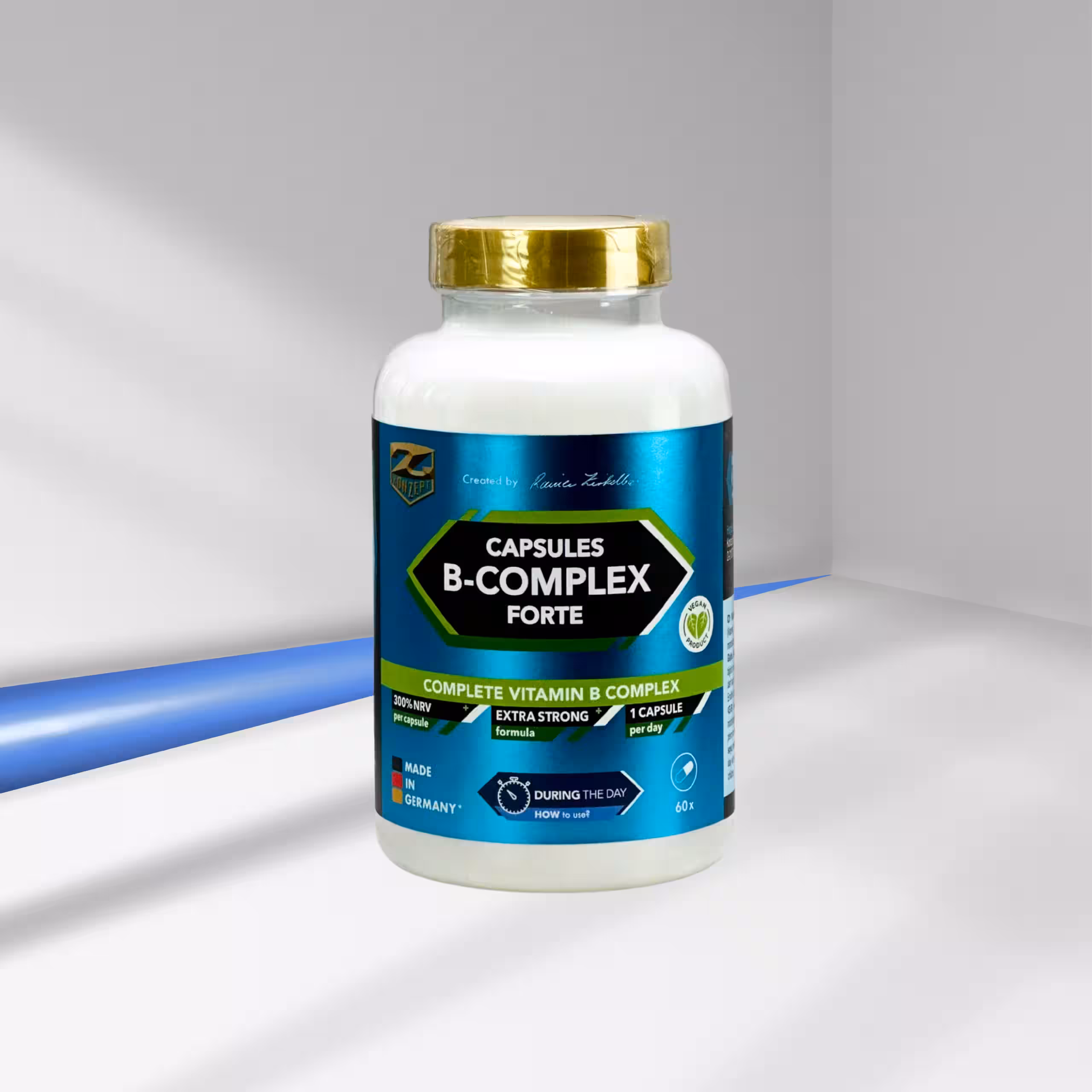 B-Complex forte: Unsere Kapseln bieten 300% NRV aller 7 B-Komplex-Vitamine in einer einzigen Kapsel. Diese Vitamine unterstützen zahlreiche Funktionen im Körper und helfen, Nährstofflücken in der Ernährung zu schließen. Ideal für einen aktiven Lebensstil und zur Förderung des allgemeinen Wohlbefindens.