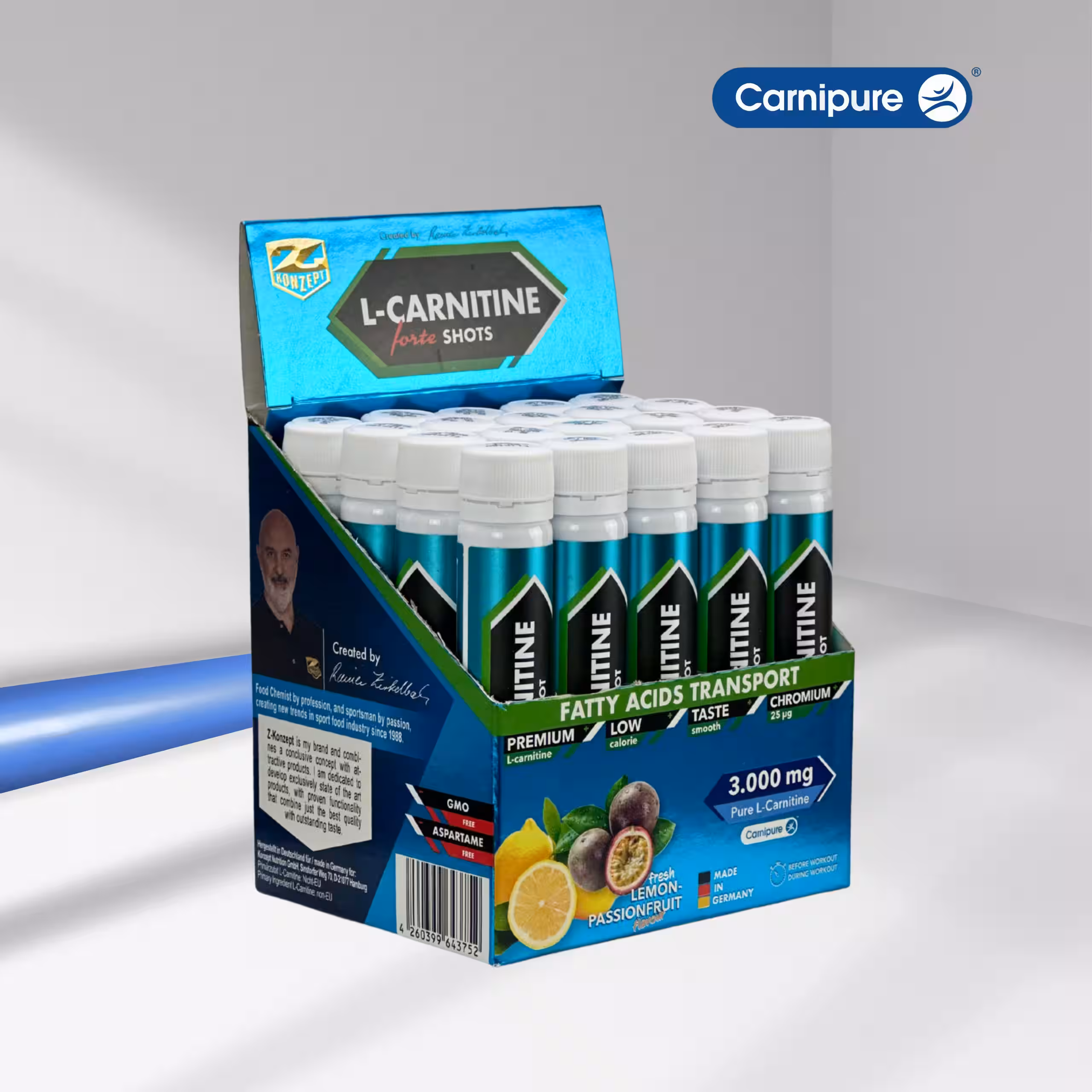 L-Carnitine forte 3000 chromium shots: Fördert den Transport von Fettsäuren in Mitochondrien zur Fettverbrennung. Unterstützt die Umwandlung von Fett in Energie und ist ideal zur Diätunterstützung. Steigert Ausdauer und Energie bei Sportlern und verbessert die Muskeleffizienz.